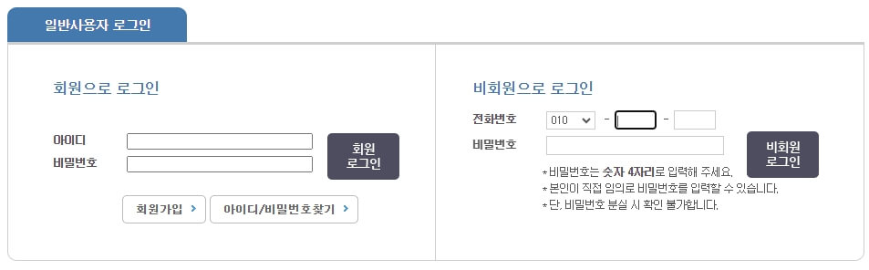 - 비회원으로 로그인하면 비밀번호를 꼭 기억하셔야하며 1건에 대해서만 열람 및 발급이 가능함