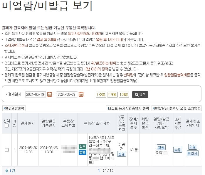 확인용이라면 열람, 제출용이라면 발급(출력)
